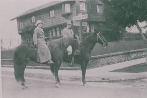 Left to right: The Milbank House, the Frank Gehry residence, and R.C. Gillis and his wife on horseback at the Gillis House (Credit: Santa Monica Public Library Image Archives).