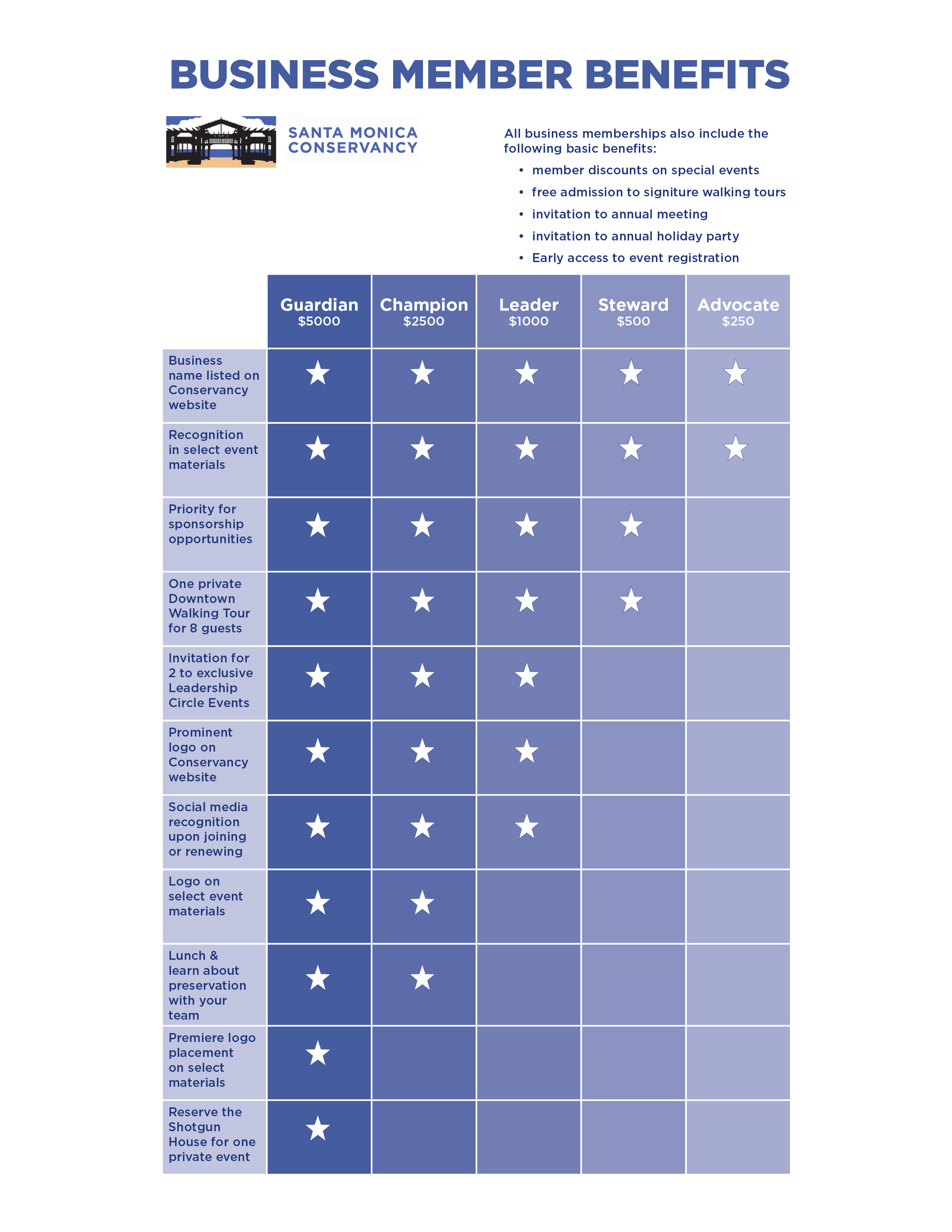 All Conservancy members receive free admission to our annual Holiday Party, discounts on tours and events, and our informative quarterly newsletter.